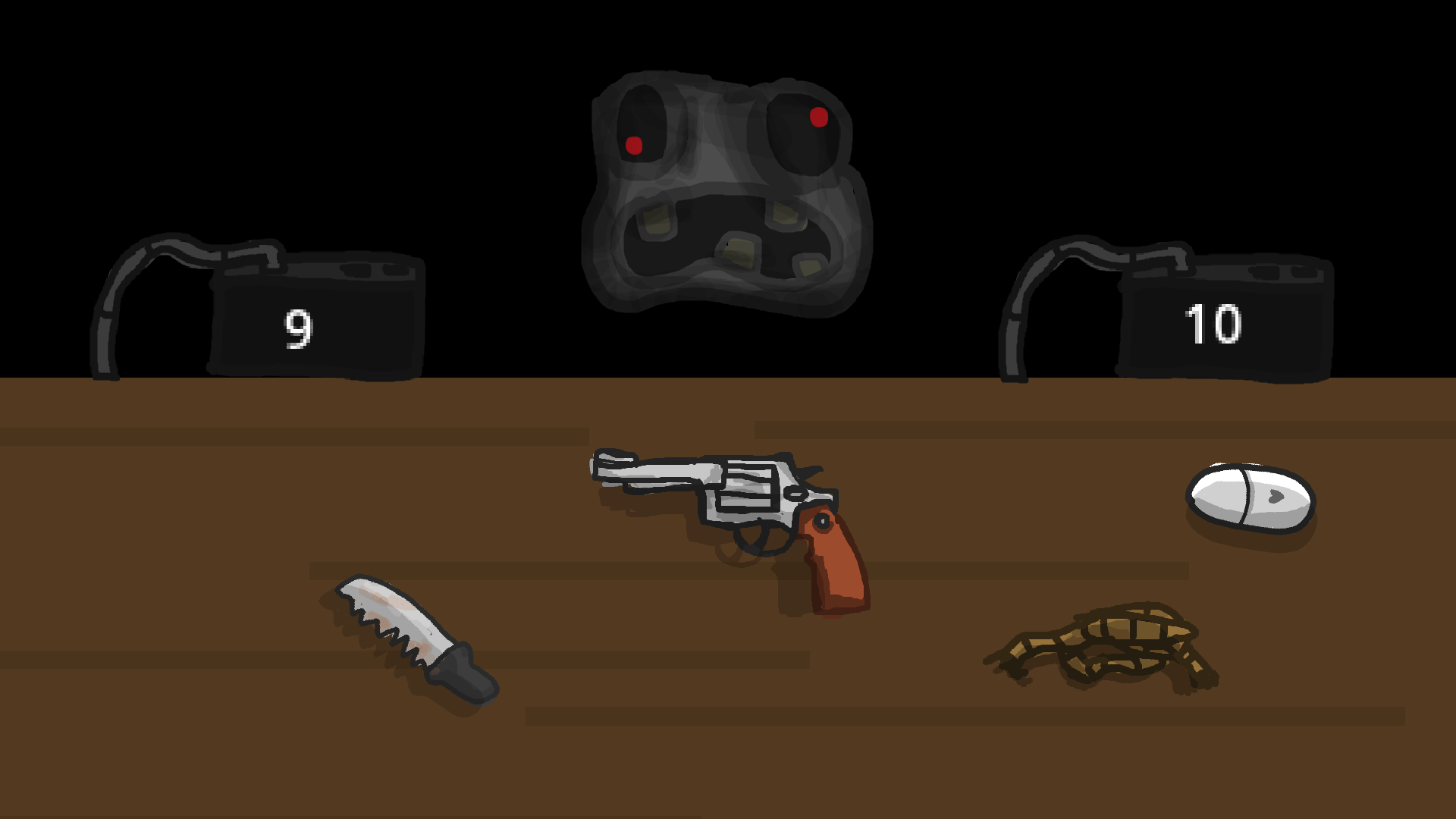 -Revolver (If you will shoot yourself with empty bullet, you will skip opponent's turn)